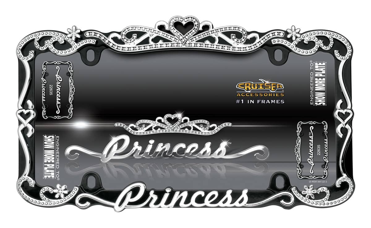 L/PLATE FRM PRINCESS CHROME/BLACK Durable Zinc Die Cast Black Powder Coated Metal Princess Emblem Is Chrome...