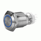 19MM STAINLESS MOMENTARY SWITCH W/HARNESS BLUE